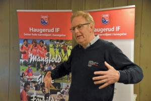 Magne Brekke (bildet til høyre) fra Idrettskretsen åpnet Haugerud IFs årsmøte på klubbhuset med å forklare hvorfor idretten i Oslo nå skal prioritere å inkludere flere barn og unge ved å holde kostnadene nede, tilby et bredere spekter av aktiviteter og samarbeide med andre. Kretsen har igangsatt et prosjekt «Idrett for alle» der det blir satt inn ressurser i form av folk, kunnskap og penger i noen utvalgte idrettslag og områder i byen.